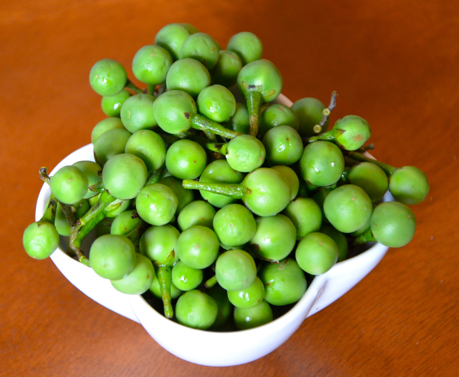 - Daun ubi, cabe merah, bawang merah, bawang putih, jahe, ditumbuk kasar di lumpang, kemudian masukkan rimbang tumbuk kasar.
